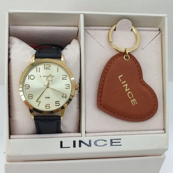 Kit Relógio Lince Analógico + Chaveiro Coração