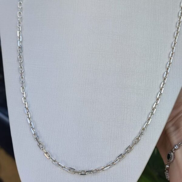 •Código 552030 •Referência 10188.70 •47 G •7 mm largura •1,5 espessura •comprimento:70cm •malha : grumet elos achatados e largos •fecho lagosta Certificado de garantia.