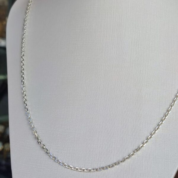 •Código 553489 •Referência 270083/15,0G •15G • 3.5mm largura •1 espessura • comprimento:60cm •malha :grumet quadrado • fecho lagosta Certificado de garantia.