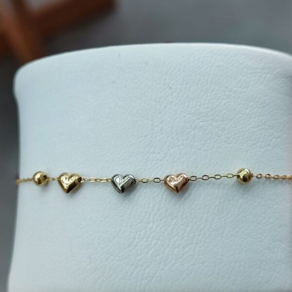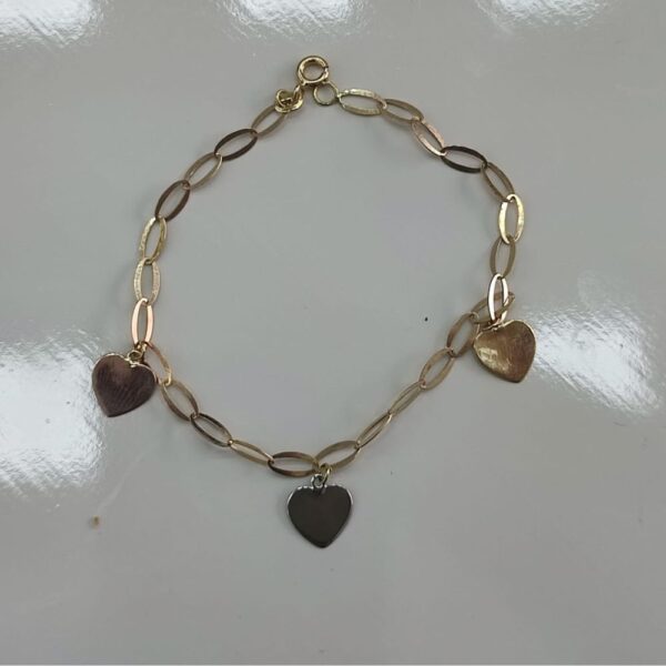 Pulseira feminina 3 Corações em Ouro 18k /750