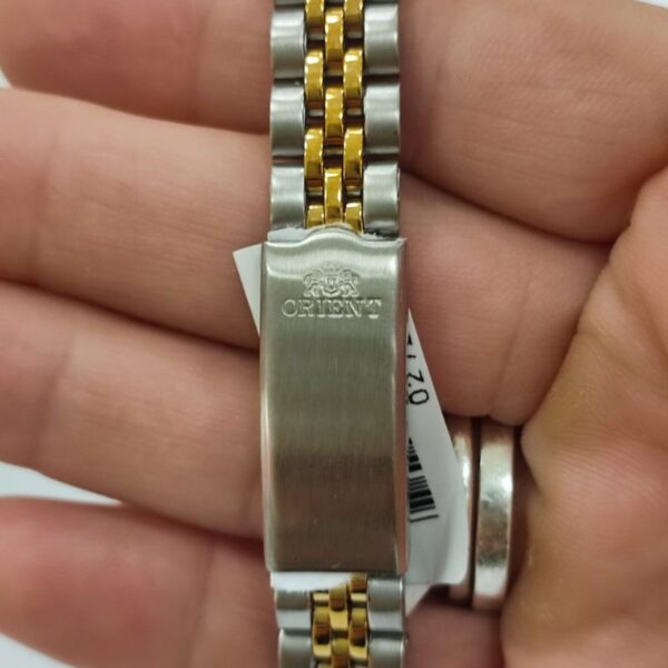 •codigo:027297 •Referência/SKu 559EB3NHB1SK •Marca Orient •Gênero: feminino •Cor :prata /dourado •diametro caixa 26Mm •Material da Pulseira Aço inoxidável prata/dourada •Mecanismo Automático Calibre 21 joias sintética •Material da Caixa Aço inoxidável prata/ dourada •Material do Vidro : cristal mineral * Resistência : 30 M • Calendário Analógico com Data e Dia da Semana Fundo rosqueado Fecho dobrável 1 ano de garantia Nota fiscal