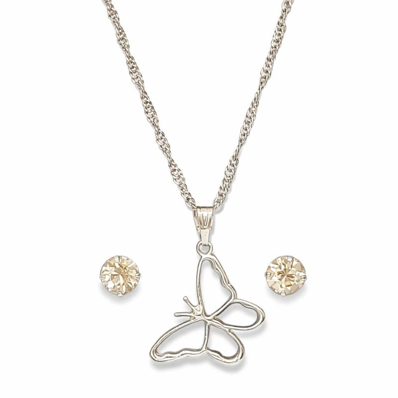Acompanha colar com pingente e um par de brincos pingente formato borboleta ( material ) semijoia