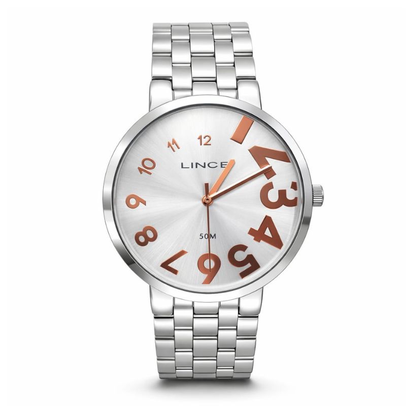 Kit Relógio Lince Analógico Prateado + Gargantilha Borboleta