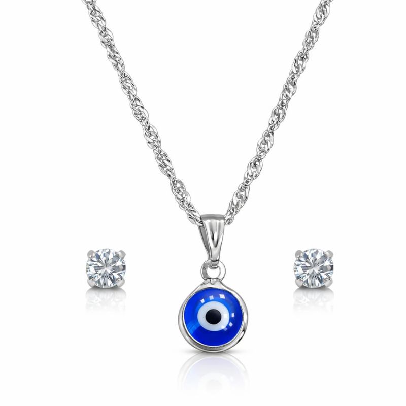 Acompanha colar com pingente e um par de brincos na cor prata ( material ) semijoia com banho de ródio.