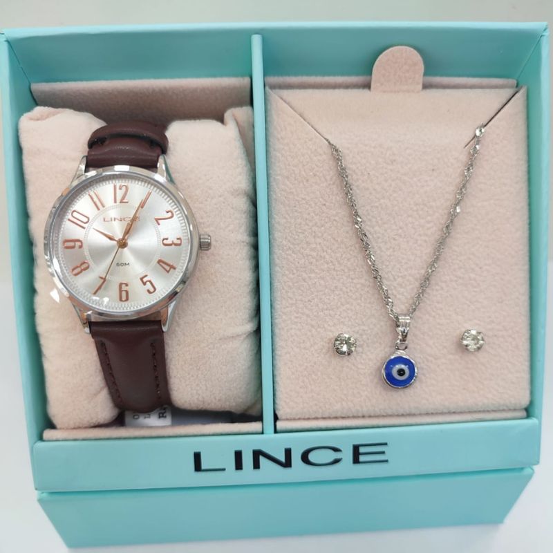 Kit Relógio Lince Analógico + Gargantilha Olho Grego