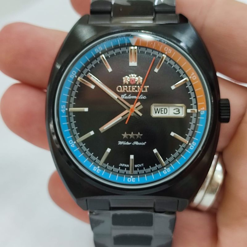 Cor do Mostrador: Preto, com aro interno em azul e laranja.